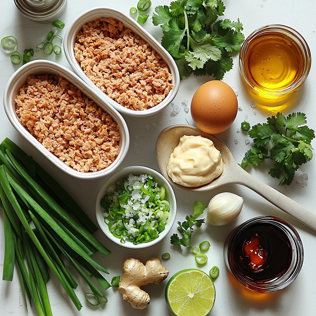 The magic of this recipe lies in its simple yet thoughtfully chosen ingredients, each adding a distinct flavor and texture that makes these Asian Tuna Cakes perfectly balanced. From the light crunch of panko to the fragrant hints of ginger and cilantro, every component plays a crucial role in creating that unforgettable taste.