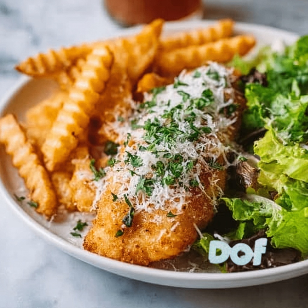 Classic sides like air fryer chips, crispy oven fries, or even your favorite freezer fries complement the crunchy texture perfectly. The fresh cos salad included in the recipe offsets the richness with its bright lemon-olive oil dressing, making the meal well-rounded and satisfying.