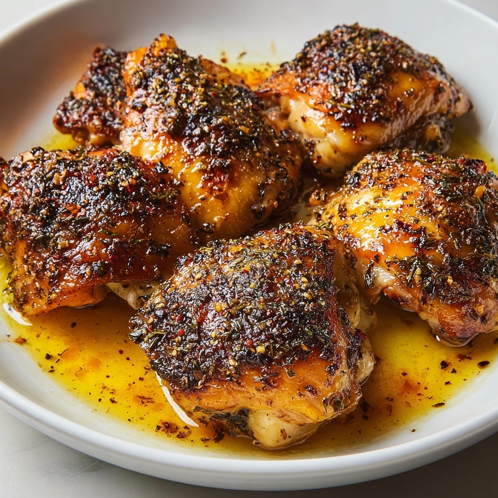 For a dinner party, consider serving these thighs on a platter garnished with edible flowers or microgreens for a stunning presentation. You can also plate them atop a vibrant cauliflower rice or quinoa to add texture and showcase the dish without overpowering the bold flavors of the chicken.