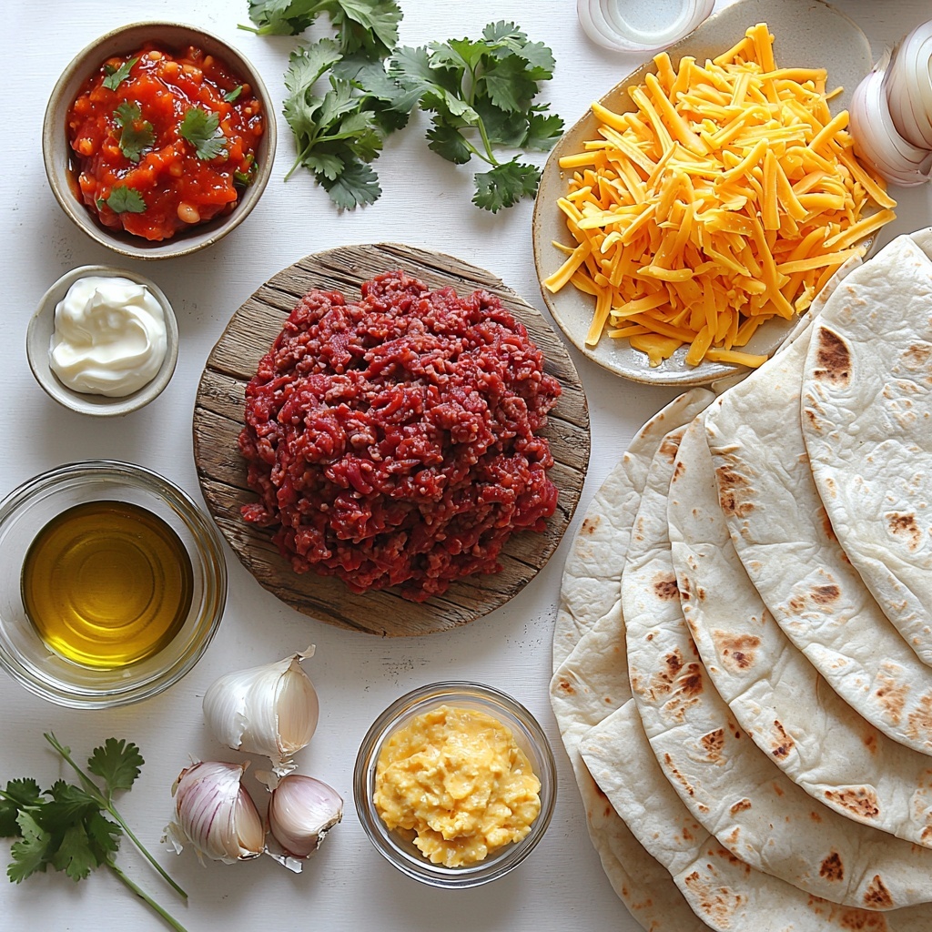 Gathering these simple yet essential ingredients is the first step to creating your delicious burritos. Each component plays a key role in building the perfect balance of savory, creamy, and tangy notes that make this Beef, Bean, and Cheese Burritos Recipe a winner.