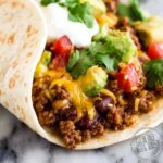 Lay each flour tortilla flat on your workspace and spread a generous spoonful of refried beans down the center of each one. Top with the seasoned beef, then sprinkle a hearty amount of shredded cheddar cheese over the beef. Add a spoonful of salsa and a dollop of sour cream if you want that perfect balance of spicy and creamy. If you’re feeling adventurous, a sprinkle of fresh cilantro adds a lovely herbal brightness.