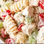 This is a cold pasta salad best served chilled. Reheating is not necessary and will diminish the fresh, bright flavors and creamy texture. Simply stir gently before serving if the salad has been sitting for a while to refresh the flavors.