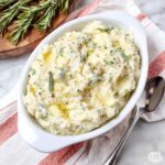Rich and creamy Blue Cheese Mashed Potatoes featuring tender russet potatoes blended with aromatic garlic rosemary butter and tangy blue cheese, baked to perfection for a deliciously comforting side dish.
