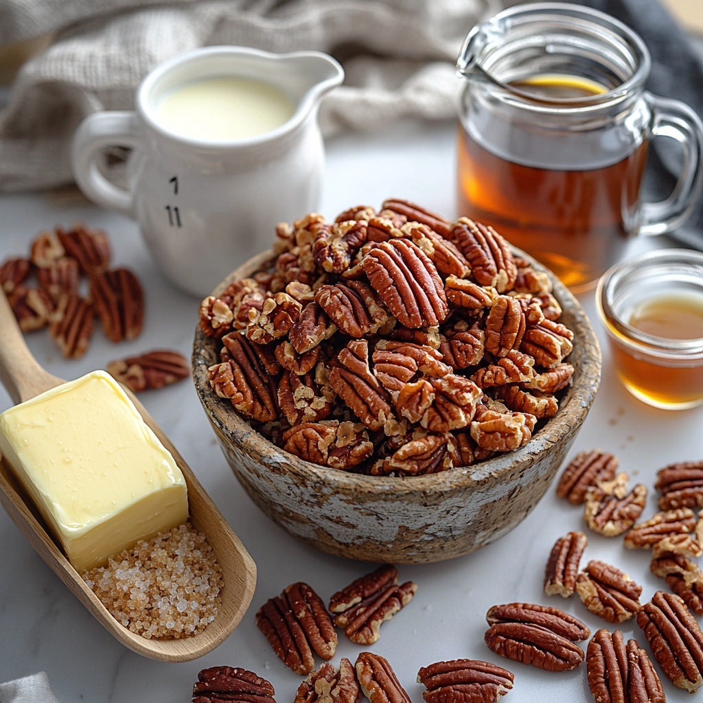 Start by warming a dry skillet over medium heat and toasting the chopped pecans until they become fragrant and slightly golden. This step unlocks the nut’s natural oils and intensifies their flavor, which is essential for that perfect buttery pecan taste. Once toasted, set them aside to cool while you prepare the syrup base.