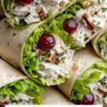 Chicken Salad Pinwheels are a delicious and easy-to-make appetizer or snack featuring tender shredded chicken mixed with juicy red grapes, crunchy pecans, and crisp celery, all bound together in a creamy mayonnaise and lemon juice dressing. Rolled in soft flour tortillas with fresh lettuce, these pinwheels are chilled to perfection before slicing, making them an attractive and refreshing finger food suitable for parties, picnics, or light lunches.