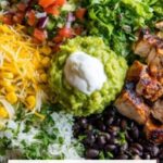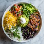 Now for the fun part: layering your ingredients. Start with a generous scoop of rice as the base. Add the cooked chicken on top, then scatter black beans and sweet corn around for a balance of textures. Follow with fresh chopped romaine or shredded lettuce, a vibrant scoop of pico de gallo or diced tomatoes, creamy avocado slices, and a sprinkling of shredded cheese. Top it all off with a dollop of sour cream or Greek yogurt for a cooling finish.