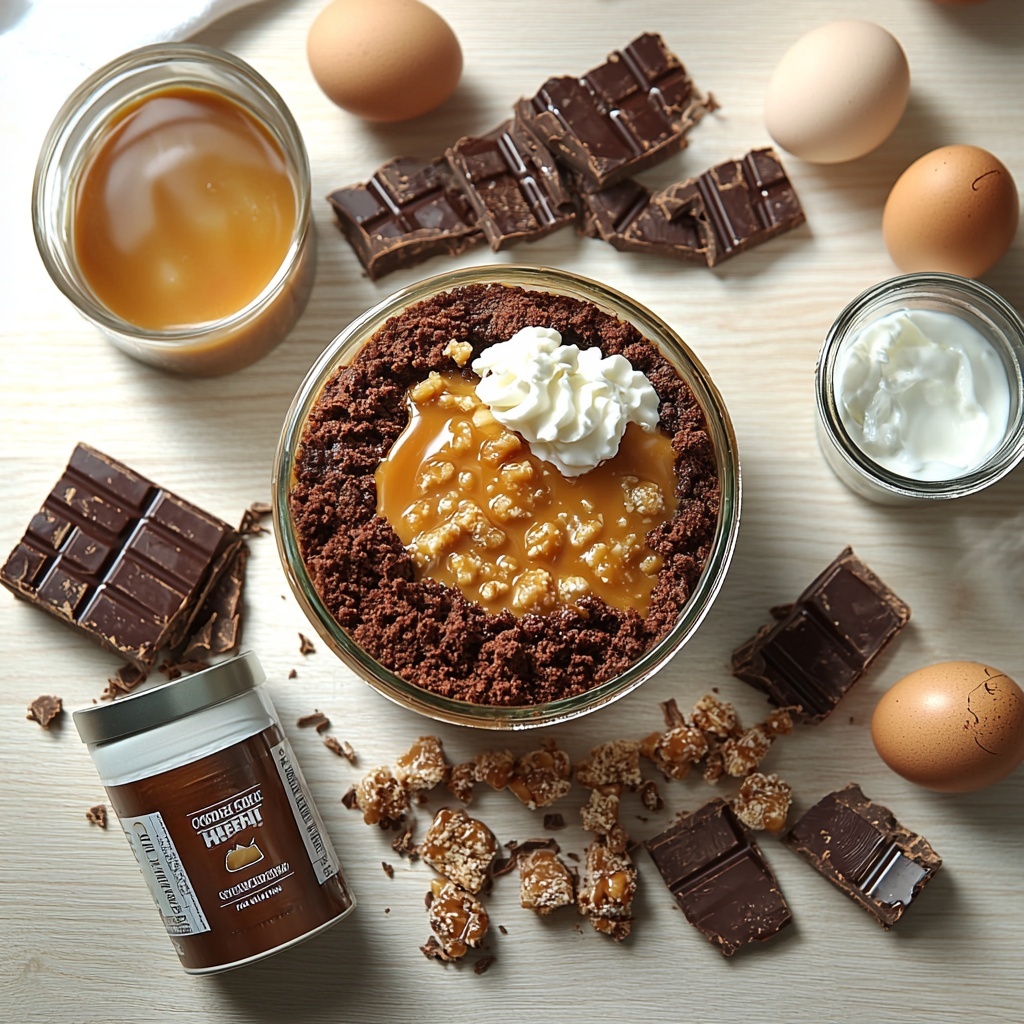 The ingredients in this Chocolate Caramel Toffee Crunch Cake Recipe are brilliantly simple yet incredibly essential. Each component brings a unique texture or flavor—from the deep, chocolatey cake base to the creamy caramel drizzle and crunchy toffee bits on top.