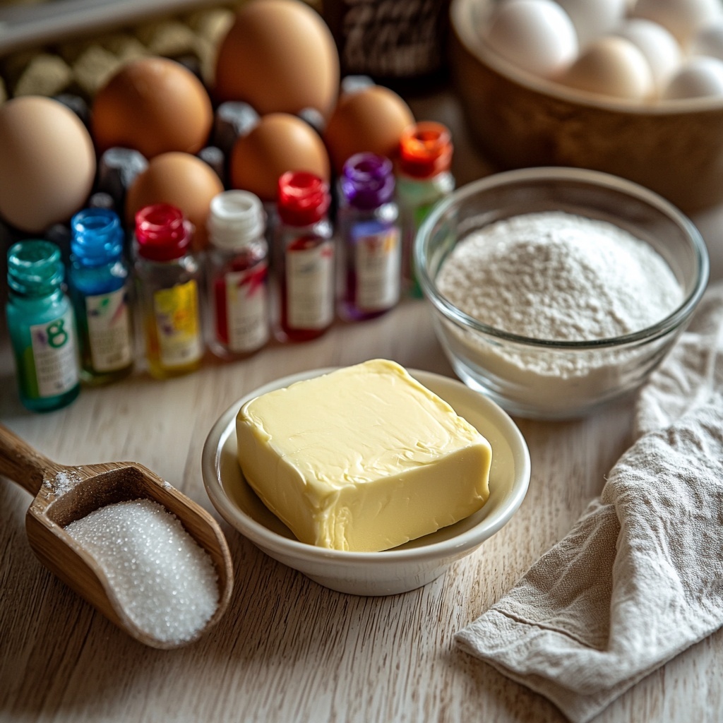 Gathering these simple ingredients is the first exciting step, as each plays a crucial role in making the cookies both colorful and irresistibly tasty. From the rich buttery base to the vibrant food coloring, every ingredient is essential to bring the dazzling geode effect to life.