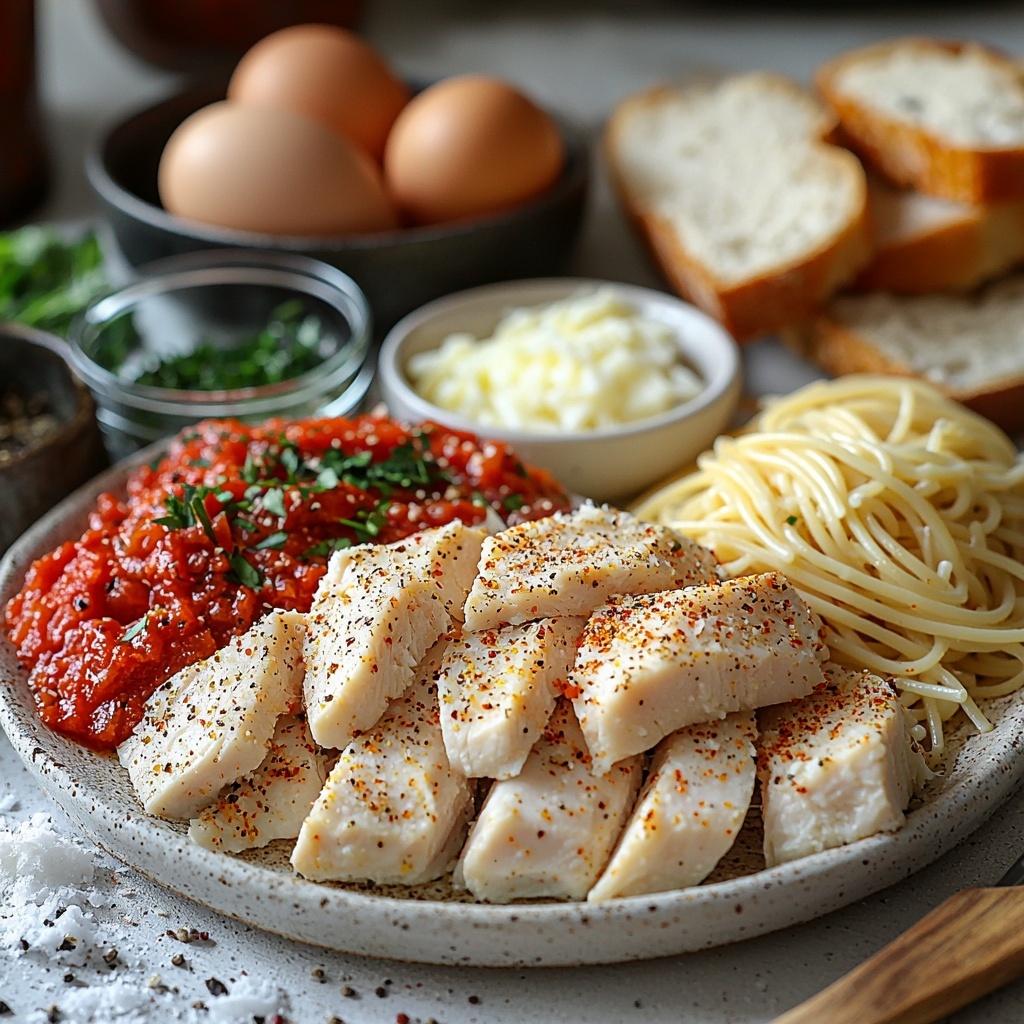 Every ingredient in this chicken parmesan recipe is simple but packs essential flavor and texture that come together beautifully. From seasoning the chicken perfectly to creating a golden breadcrumb crust, these ingredients will make your meal irresistible.