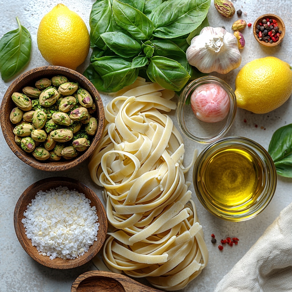 - 12 oz pasta (linguine, spaghetti, or penne): Choose your favorite pasta shape to hold that luscious pistachio pesto beautifully.
