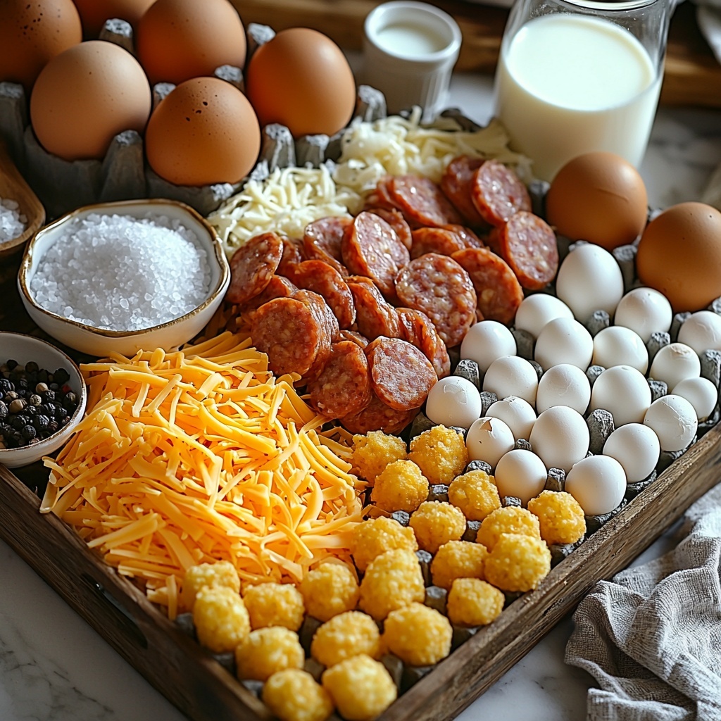 All the ingredients in this recipe are straightforward staples, but each one plays a crucial role in building the irresistible taste and texture of this casserole. From the spicy beef sausage offering bold flavor to the crunchy tater tots creating a satisfying base, these components come together like magic in your oven.