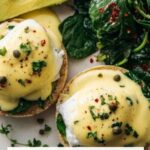 - Garnish and Serve: Sprinkle the assembled Eggs Benedict with capers and chopped fresh chives. Serve with avocado slices on the side, sprinkled with hemp seeds for added texture and flavor.