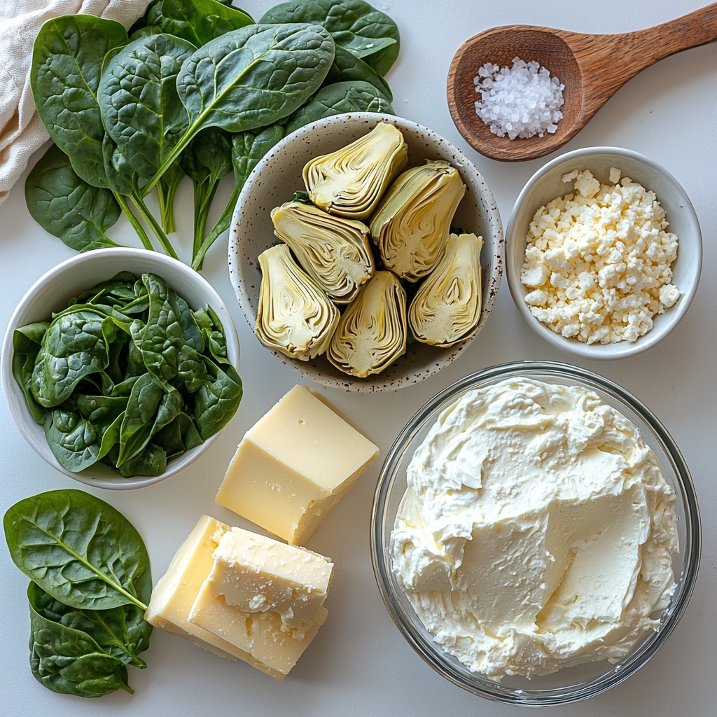 The magic behind this Fool-Proof Creamy Spinach & Artichoke Dip (Better Than Restaurant Style) Recipe lies in its thoughtfully simple ingredients. Each component plays a vital role: the spinach adds earthiness and color, artichokes bring a subtle tang, creamy cheeses offer richness, and the seasonings tie everything together with flavorful finesse.