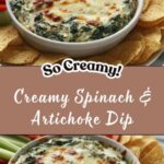 This Fool-Proof Creamy Spinach & Artichoke Dip is a deliciously rich and creamy appetizer that rivals any restaurant version. Made with thawed spinach, chopped artichokes, a smooth blend of cream cheese, sour cream, and mayonnaise, and loaded with mozzarella and Parmesan cheeses, this dip is baked to bubbly perfection with a golden crust. It’s perfect for parties, game days, or as a comforting snack.