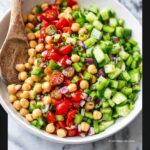 A fresh and vibrant Chickpea Salad bursting with the flavors of grape tomatoes, cucumber, bell pepper, and herbs, dressed in a tangy lemon and red wine vinegar dressing with cumin. This easy no-cook salad features optional creamy avocado and is perfect for a light, nutritious meal or side dish.