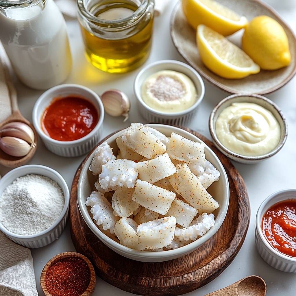 This recipe calls for a handful of straightforward but essential ingredients, each chosen to create the perfect balance of flavor and crunch that makes fried calamari so addictive. From the tender squid to the flavorful coating, every element plays a crucial role in elevating this dish from simple to spectacular.