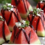 - Serve and Garnish: Transfer the grilled watermelon slices to a clean serving platter while still warm. Top with crumbled feta cheese, fresh mint or basil leaves, chili flakes, and drizzle additional balsamic glaze if desired. Serve immediately as an appetizing starter, side dish, or a refreshing dessert alternative.