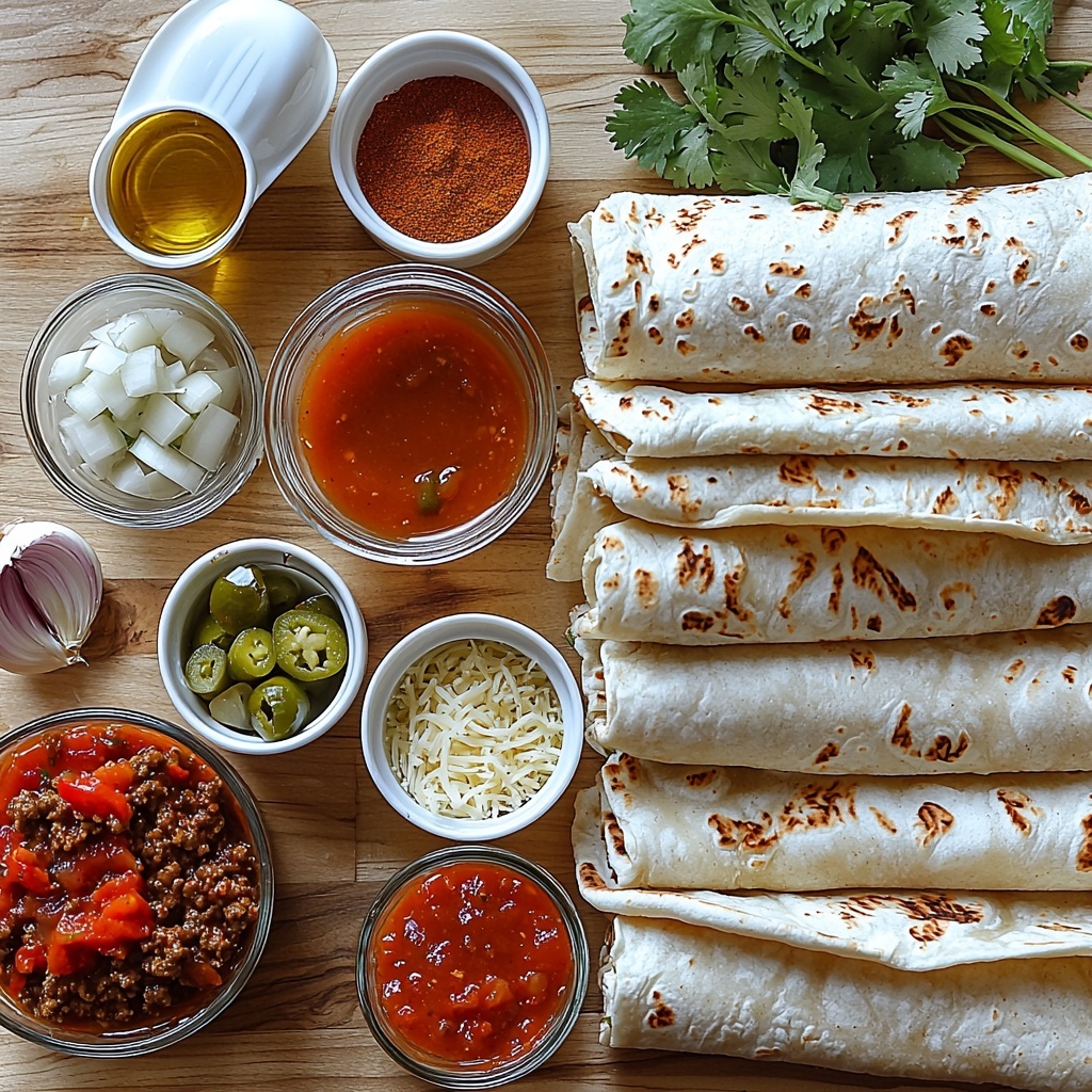 - 8 large flour tortillas (Burrito-size): Soft and flexible, perfect for wrapping and baking.