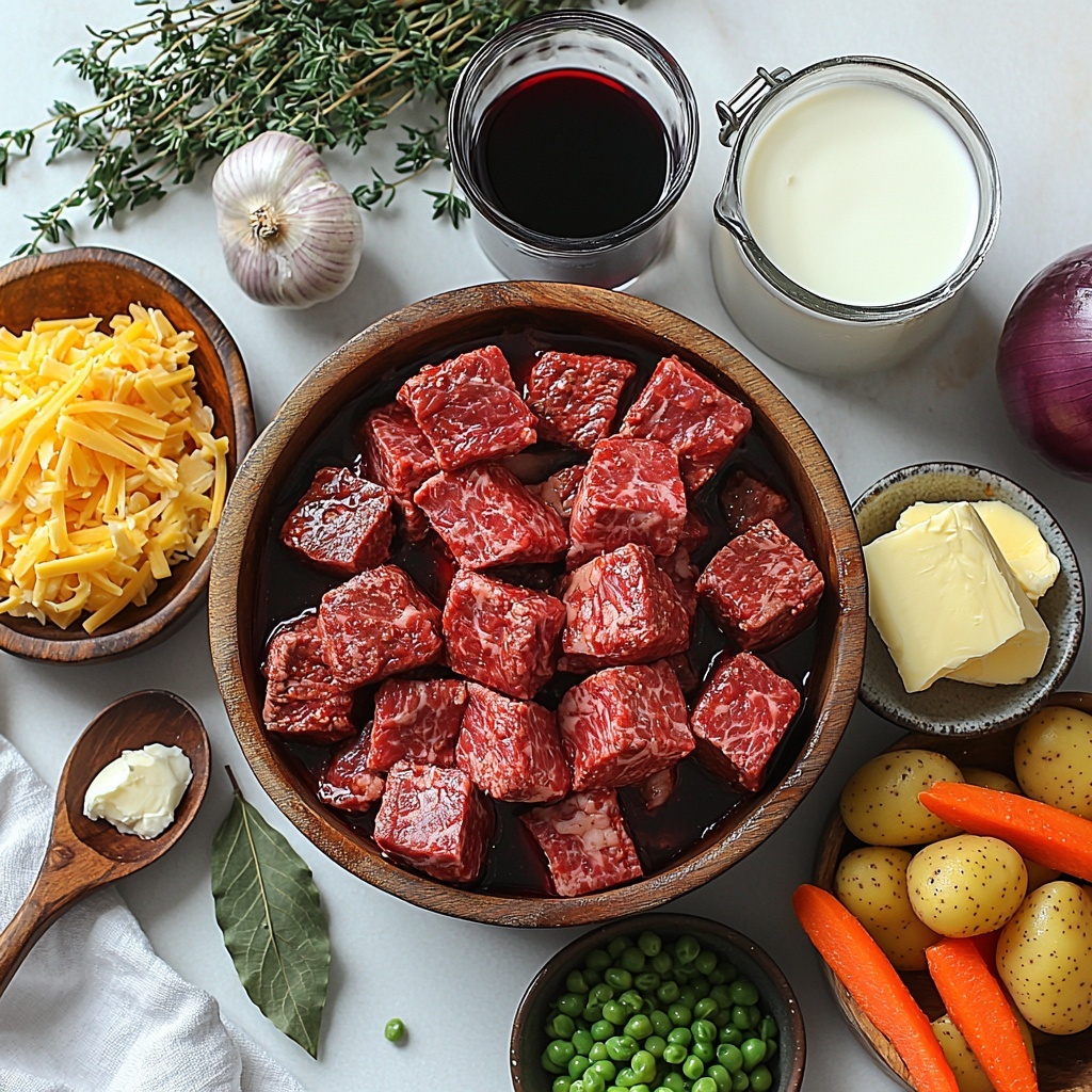 Every ingredient in this recipe works in harmony to build incredible depth and texture, yet the list remains refreshingly simple. From hearty beef chuck to bright fresh herbs, each component plays an essential role in delivering this unforgettable dish.