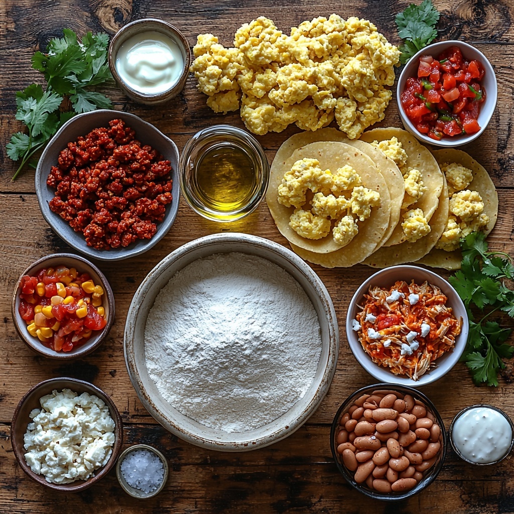 Refried beans, scrambled eggs with chorizo, or shredded chicken with salsa all work beautifully. You can also get creative with cheese, cooked vegetables, or even spicy beef fillings.