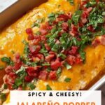 These Jalapeño Popper Cheesy Chicken Enchiladas are a flavorful twist on classic enchiladas, combining tender shredded chicken with creamy cheeses, spicy jalapeños, crispy bacon, and a rich enchilada sauce. Baked to bubbly perfection, they offer a delightful blend of smoky, cheesy, and mildly spicy flavors perfect for any dinner occasion.