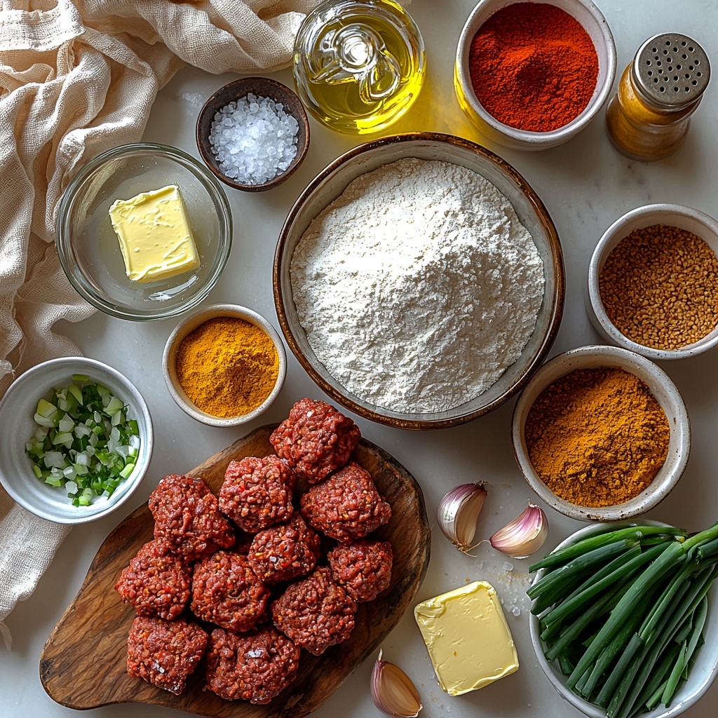 While your dough chills, heat up the vegetable oil in a skillet over medium heat. Sauté the chopped onions, minced garlic, and optional Scotch bonnet pepper until fragrant and translucent—about 3 minutes. This base builds the flavor foundation of the filling. Next, add your ground beef, breaking it up with a spoon, and cook until it’s beautifully browned. Stir in the dried thyme, curry powder, allspice, paprika, salt, and black pepper for that irresistible Jamaican spice profile. Pour in the beef broth and let the mixture simmer gently until the liquid evaporates, intensifying the rich flavors. Off the heat, fold in breadcrumbs and chopped green onions to perfectly bind the filling. Allow it to cool while you prep your dough.