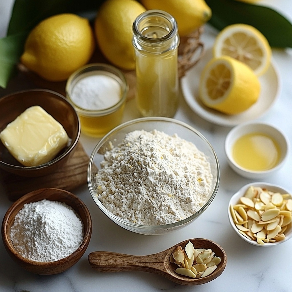 To create this bright and luscious cake, the ingredients are straightforward yet carefully chosen to ensure a perfect balance of texture, flavor, and visual appeal. Each one plays a key role—from the dual flours that provide a tender crumb to the fresh lemon zest that infuses vibrant citrus notes.