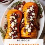 This Maple Roasted Butternut Squash with Brown Butter Herb Drizzle and Toppings Recipe pairs beautifully with roasted meats like turkey or chicken, making it ideal for holiday spreads or cozy weeknight dinners. It also complements a simple grain dish like quinoa or wild rice, absorbing its juices perfectly.