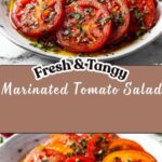 A vibrant and refreshing Marinated Tomato Salad featuring ripe tomatoes, red onions, and a tangy homemade marinade made with olive oil, vinegar, lemon juice, Dijon mustard, and herbs. Perfect as a light side dish or appetizer, this salad is quick to prepare and benefits from a short marinating time to deepen the flavors.