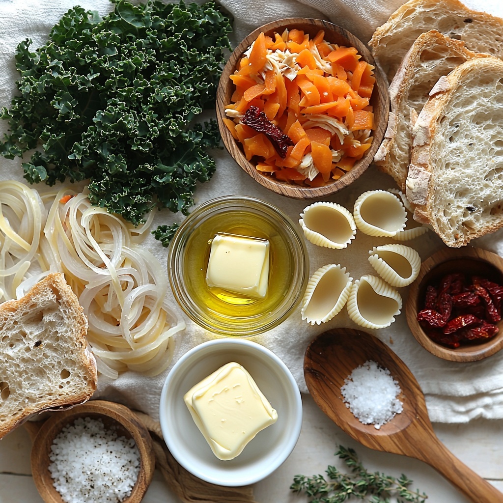 Every ingredient in this recipe plays a crucial role in building layers of flavor, depth, and texture that make this soup so unforgettable. From the richness of butter and cream to the vibrant tones from kale and sun-dried tomatoes, these simple staples come together effortlessly to create magic.