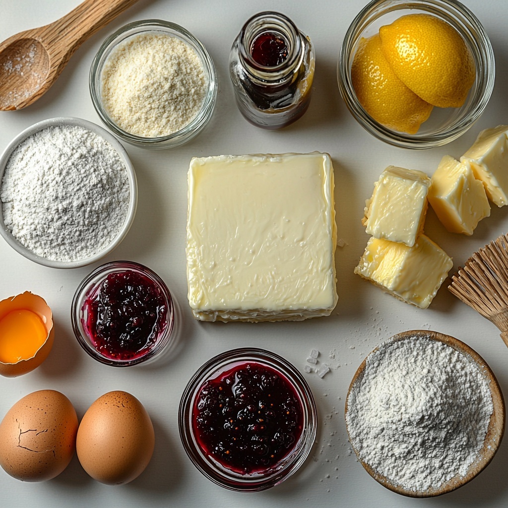 While your dough chills, whip up the irresistible cheesecake filling by beating softened cream cheese with powdered sugar until silky smooth. Then, add one egg yolk, vanilla extract, and a splash of lemon juice or zest. This mixture should become thick and silky—just the right consistency to hold a jam topping without sliding off.