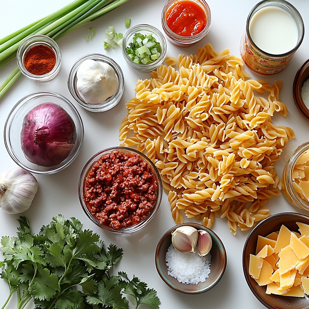 Fresh garnishes really elevate this dish. A sprinkle of chopped cilantro or sliced green onions adds a refreshing contrast to the rich, cheesy pasta. If you want more texture, a handful of crushed tortilla chips or a dollop of sour cream on top makes for a fun and tasty crunch and creaminess combo.