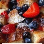 This Overnight French Toast recipe is a comforting and delicious make-ahead breakfast casserole featuring day-old French bread soaked in a rich custard mixture, topped with a buttery crumb topping and fresh berries. Perfect for feeding a crowd with minimal morning prep, it bakes to golden perfection with a sweet, cinnamon-infused flavor.