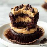 5. Create Wells: Immediately after baking, press the center of each brownie cup gently to form a small well for the peanut butter filling.