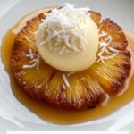 This Pineapple Tarte Tatin is a delightful twist on the classic French dessert, featuring caramelized pineapple slices baked under a golden puff pastry crust. Paired with a creamy coconut and lemongrass ice cream, it offers a tropical and aromatic contrast that enhances the caramel’s richness. Perfect for summer gatherings or an elegant dessert, this recipe combines the caramelization technique with baking to create a stunning and flavorful treat.