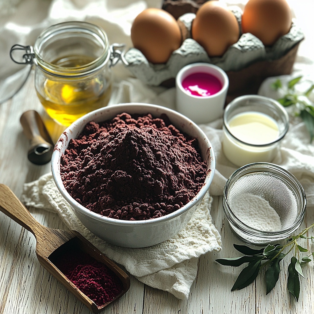 Gathering just the right ingredients is the secret to making your Red Velvet Cupcakes Recipe shine. Each component plays a crucial role, from the cake flour ensuring a delicate crumb to the red gel food coloring providing that iconic vibrant tint.