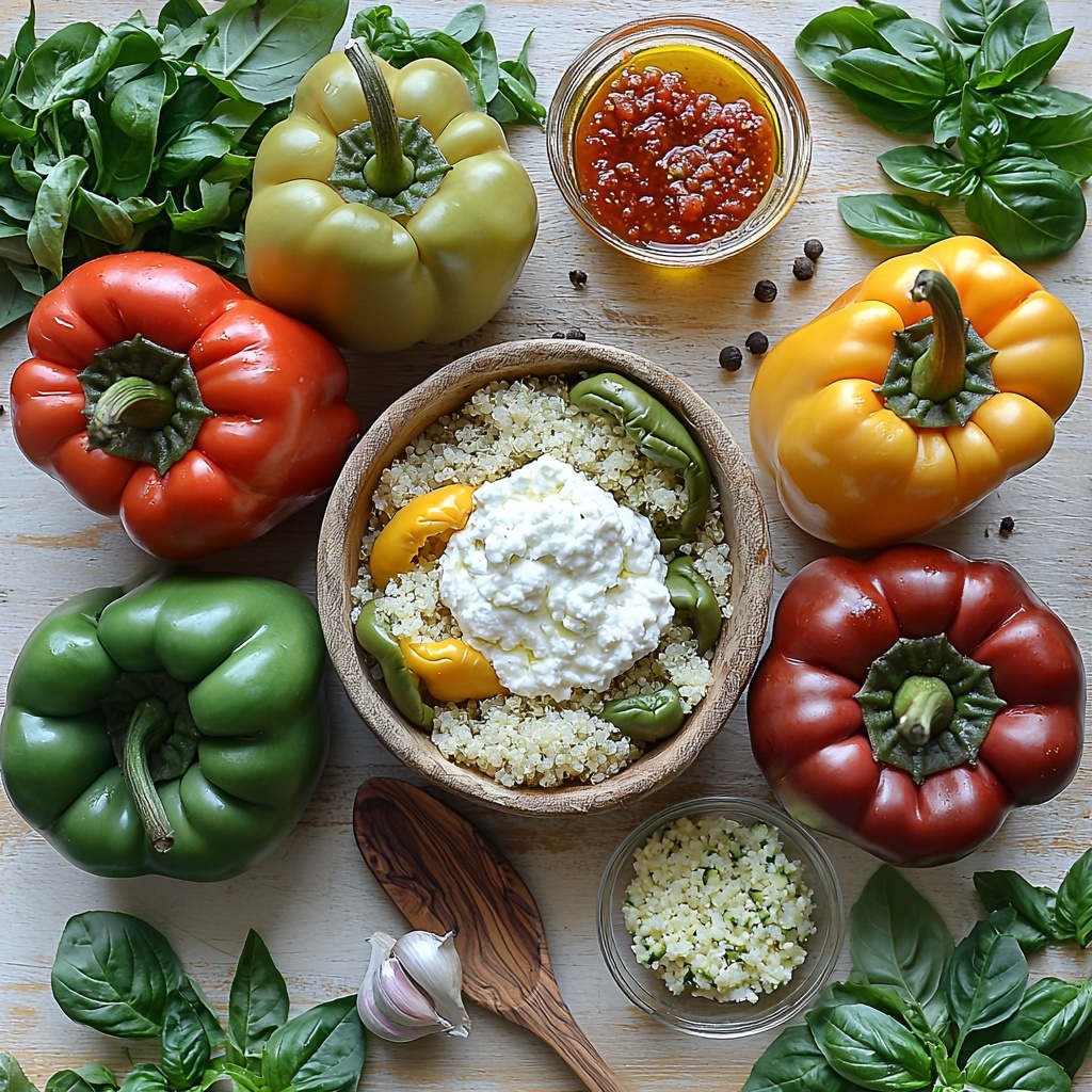 Irresistible Ricotta Stuffed Peppers are a healthy, low-carb, and flavorful dish featuring bell peppers filled with a creamy ricotta cheese mixture combined with vegetables and quinoa or cauliflower rice. This baked dish is versatile, allowing customization for vegan or meat-inclusive variations, making it perfect for a nutritious main course.