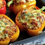 This dish pairs wonderfully with a crisp green salad dressed with lemon vinaigrette or some simply roasted vegetables. Both options keep the meal light and fresh, complementing the hearty, creamy stuffed peppers without overpowering them.
