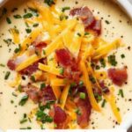 - Serve and Garnish: Ladle the soup into bowls, then top with crumbled bacon, extra shredded cheddar cheese, sliced chives, and a dollop of sour cream for a classic loaded baked potato soup experience.