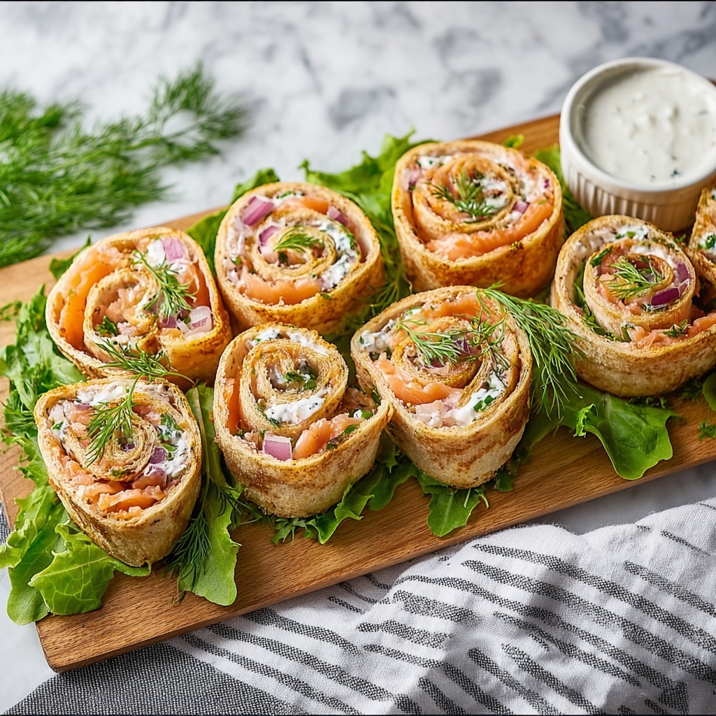 Smoked Salmon Pinwheels are elegant, easy-to-make appetizers perfect for brunch, parties, or snacks. Soft flour tortillas are spread with a creamy dill-flavored cheese mixture, layered with smoked salmon, fresh greens, and optional red onion, then rolled tightly and chilled to create bite-sized, flavorful pinwheels.