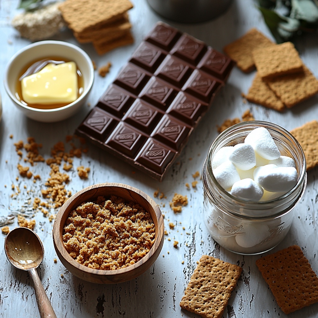 This S’mores Bar Recipe calls for a handful of simple ingredients, each playing a crucial role in building those layers of texture and flavor we love. From the crunchy base to the gooey topping, every component complements one another to create that comforting, melt-in-your-mouth experience.