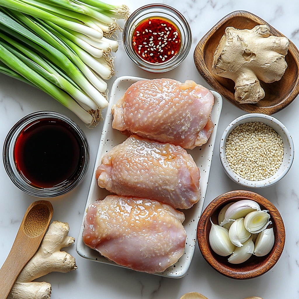 This Soy Ginger Chicken Thighs Recipe calls for a handful of simple but essential ingredients, each playing a special role in creating its incredible flavor profile. From the savory depth of low sodium soy sauce to the warm zing of fresh ginger and the subtle heat from sambal oelek, every element adds layers of deliciousness and texture.