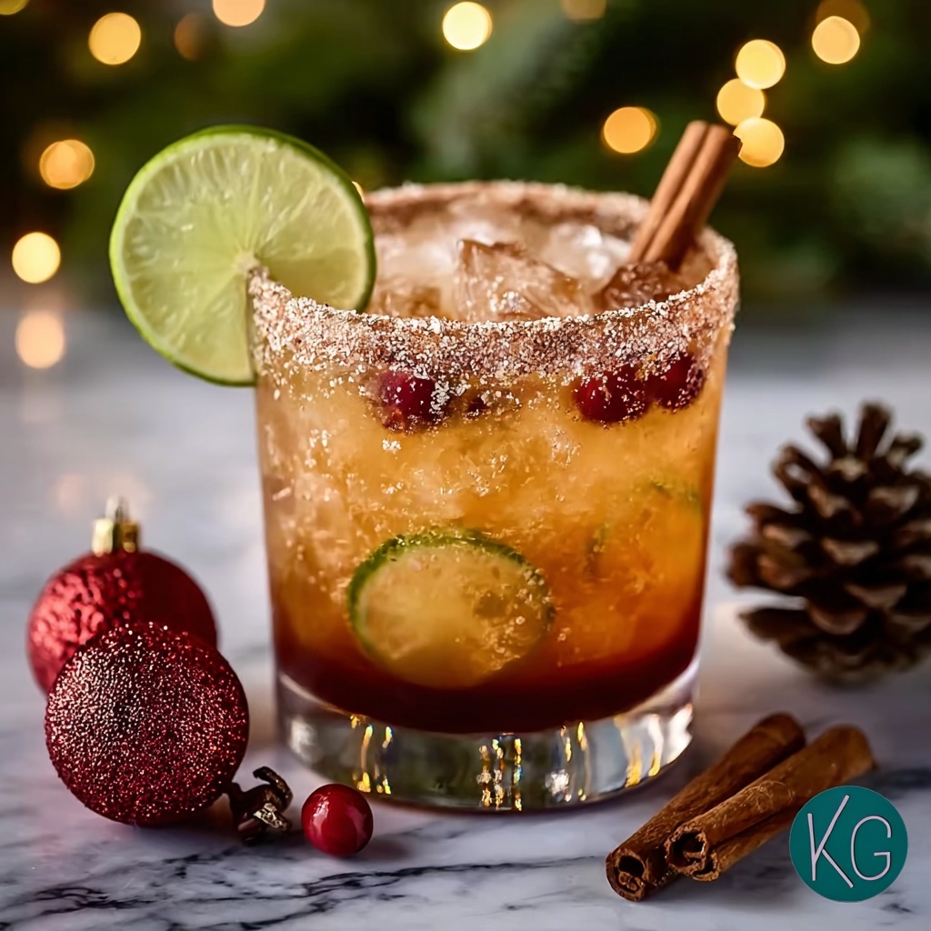 A festive and flavorful Spiced Christmas Margarita combining the tartness of lime and cranberry with warming spices like cinnamon and nutmeg, perfectly balanced with tequila and orange liqueur for a delightful holiday cocktail.