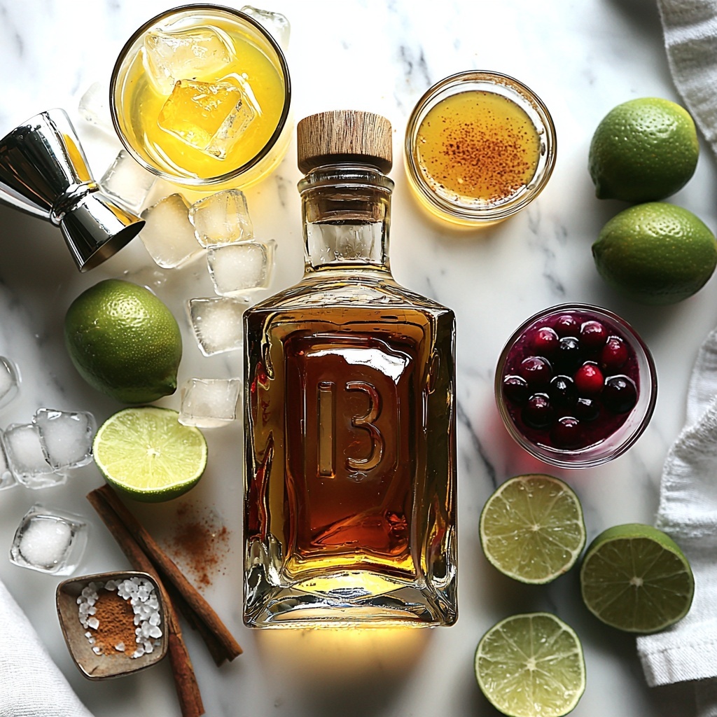 Combine the tequila, orange liqueur, lime juice, cranberry juice, ground cinnamon, nutmeg, and agave syrup in a cocktail shaker. Each ingredient contributes a unique character—tanginess, sweetness, and warm spices—that collectively define the spirit of the Spiced Christmas Margarita Recipe.