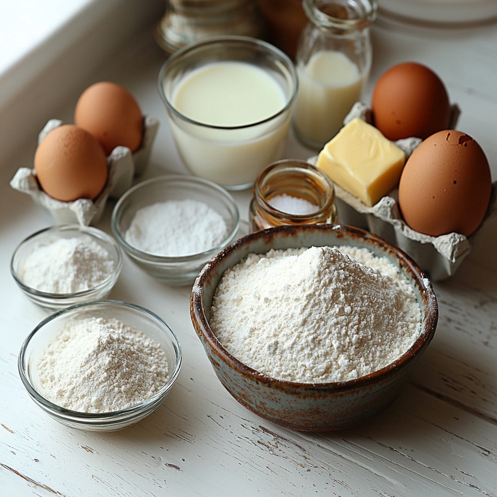 These ingredients are delightfully simple but exactly what you want to create pancakes that are light, rich, and flavorful. Each item plays a key role, from the fluffy structure built by the flour and baking agents to the soft, creamy texture given by the heavy cream and eggs.