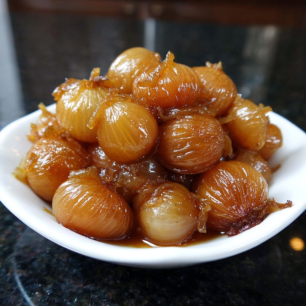 This Sweet Date Syrup Onion Boil works wonderfully alongside roasted meats like lamb, chicken, or pork. It also pairs well with creamy mashed potatoes or hearty grains such as quinoa or farro. The sweet-savory melody of this onion dish elevates any main course effortlessly.