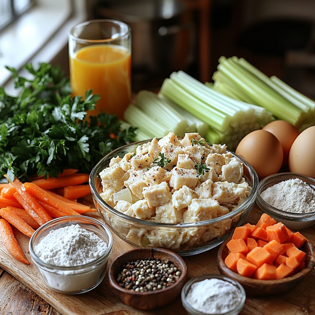 To make this delightful chicken and dumplings dish, you’ll only need straightforward, wholesome ingredients that together create a symphony of flavor and texture. Each ingredient plays a crucial role, from the aromatic vegetables that build a savory base to the light dumplings that soak up all the delicious broth. Let’s dive into what you’ll gather to bring this warm dish to life!