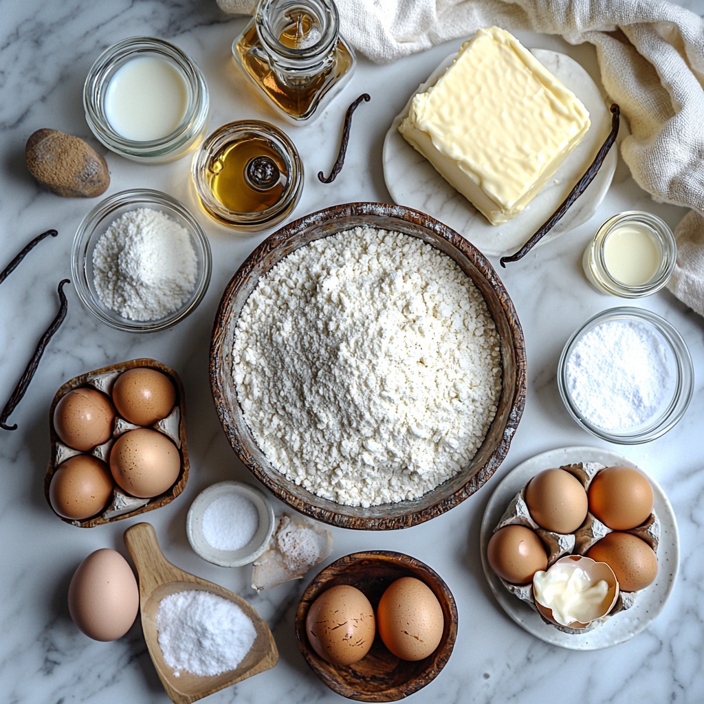 The magic behind this Vanilla Buttermilk Pound Cake with Cream Cheese Glaze Recipe lies in its straightforward ingredients. Each one plays a vital role in creating the perfect texture, flavor, and sweetness you will adore.